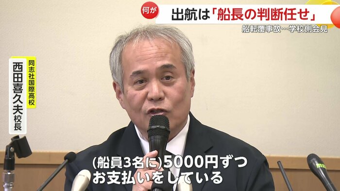 当時、波浪注意報が出ていたことについて、校長は「(船長から)特に言及はなく、出航に関しての疑念も話されなかった」と述べ、出航の判断は船長に委ねていたと説明した。