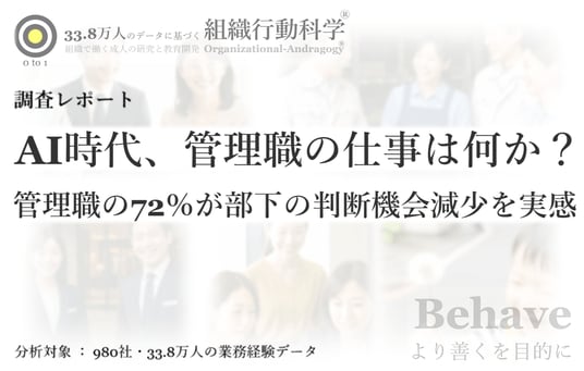 調査レポート公開:企業の82%で、AI時代に必須の「判断経験」が減少。33.8万人・980社の分析から、AI時代の人材育成課題を公開(組織行動科学(R))