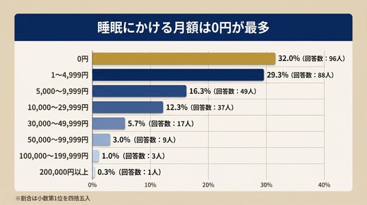 3人に1人が0円という結果は、睡眠改善への投資が限定的であることを示しています。理想の睡眠とのギャップを感じながらも、具体的な対策にお金をかけていない――この現実が、睡眠問題が改善しない一因になっている可能性があります。