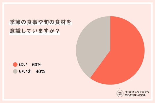 「はい」60.0%、「いいえ」40.0%と、6割が旬の食材を意識していることがわかりました。食への関心が高まる中、季節を感じる食生活への意欲は確実に根付いていることがうかがえます。