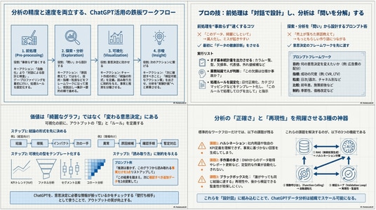 - ChatGPT活用の鉄板ワークフロー(前処理→分析→可視化→示唆)