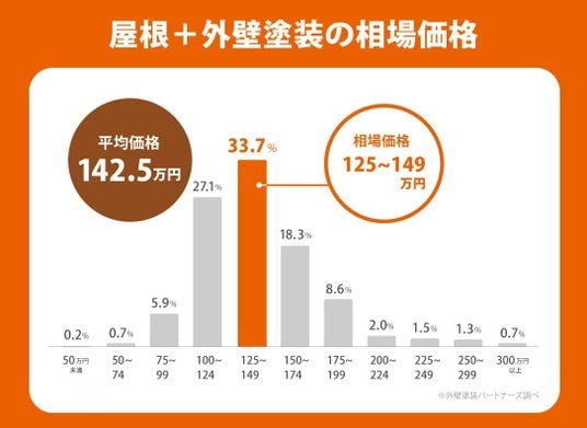 - 屋根+外壁塗装の平均価格は「142.5万円」