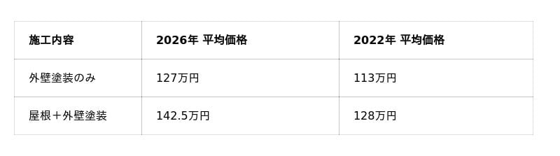 - 価格上昇の主な要因は、近年のインフレ(資材代・人件費の高騰)に加え、「無機塗料」「フッ素樹脂塗料」など初期費用が高くても長寿命な高耐久塗料へのニーズ移行が影響。