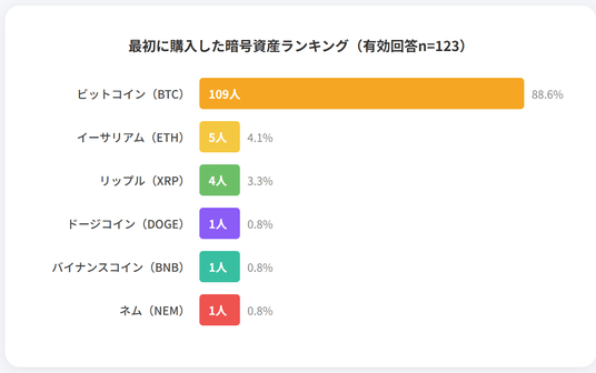 最初に購入した暗号資産ランキング|約9割がビットコイン(BTC)を選択