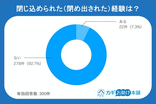 実際に鍵の故障やドアノブの不具合で閉じ込め・閉め出しを経験した人は全体の7.3%でした。