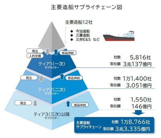 主要造船のサプライチェーン、全国1.8万社 3兆円規模