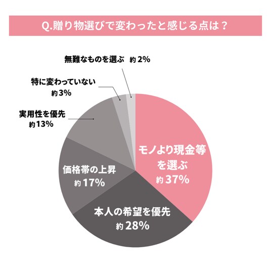 - モノより現金・ギフトカードを選ぶようになった:約37%