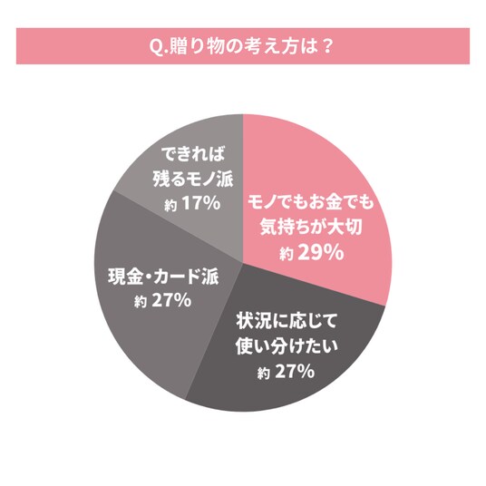 - 気持ちが伝われば、モノでもお金でもよい:約29%