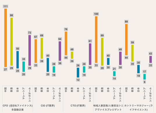 ・トップIT人材や役員レベルなど、ハイスキル人材の給与においては中国、香港、シンガポールの給与が日本を上回るケースが多く見られます。