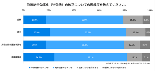 Q1. 物流業界の3つの法律の改正について、それぞれ理解度を教えてください。