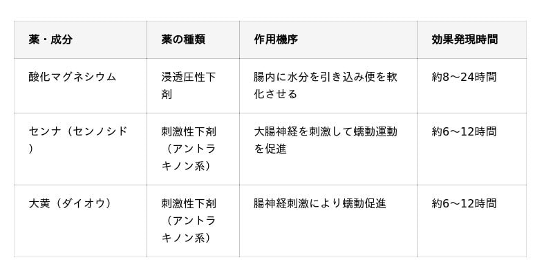 酸化マグネシウムのような「浸透圧性下剤」は、便に水分を引き込んで柔らかくするもので、腸を直接刺激しないため習慣性は比較的少ないとされています。