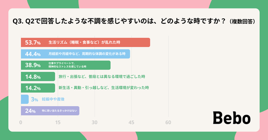 - 不調を感じるきっかけの第1位は「生活リズムの乱れ(53.7%)」であり 、春の新生活シーズンは特に注意が必要です。
