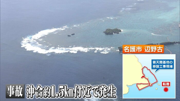 船が転覆した現場は辺野古の沖合、約1.5kmの海域。
