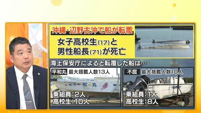 転覆した2隻は、海上運送法に基づく事業登録をしていなかったことが分かっていますが、一方で学校側は、この2隻の運輸局への登録や保険への加入状況を把握しておらず、船長との信頼関係の上で「大丈夫」という判断を下していたといいます。