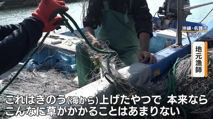 これは(事故があった日に)上げた網で、本来ならこんなに草がかかることはあまりない。それくらい海の中が荒れていた…そういうことですね。