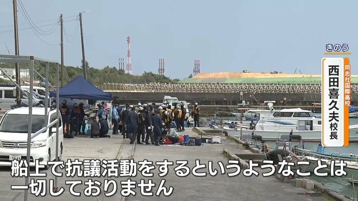 承諾があったのかどうかということですけど、「抗議船」という名前で私たちは生徒には説明をしておりませんし、保護者の方にも「こういう船に乗ります」という連絡はしておりますけども、それに対して同意を取ったりという形はしておりません。