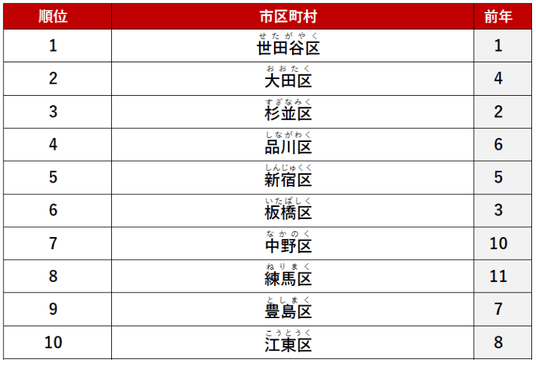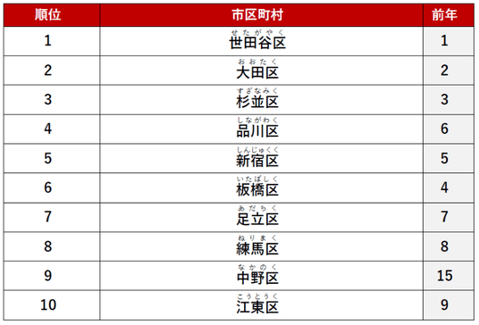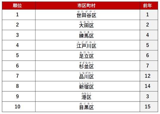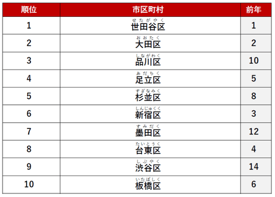 2位に「大田区」、3位に「杉並区」がランクインしました。