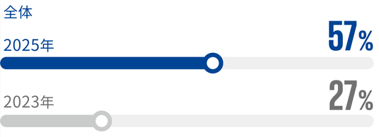 2.「AIに関するリスク管理が重点施策」と回答した企業は、前回の調査から2倍以上の57%へ急増。ガバナンスの実態をみるとルール、ガイドラインの制定は進んでいるものの、より成熟したレベルの施策は低水準にとどまっている。Trust(信頼・安全・ガバナンス)領域は企業の成長のエンジン基盤として再定義することが求められる。