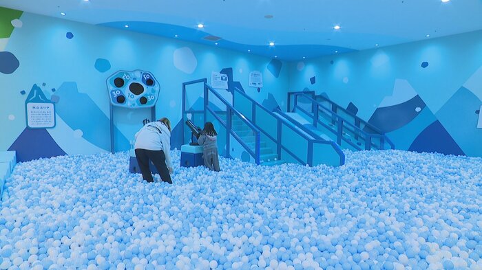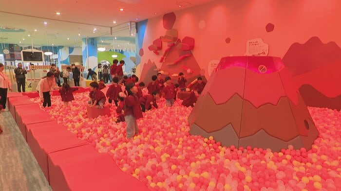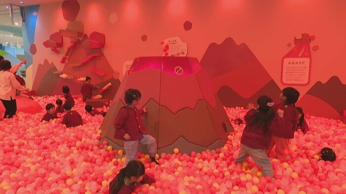 このうち火山エリアではマグマ色のボールプールがあり、火山の河口にボールを入れると噴火する仕組みになっています。