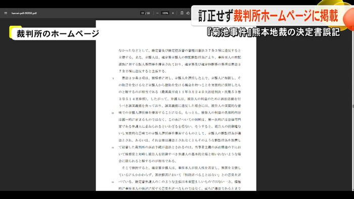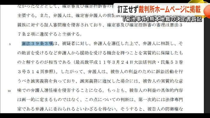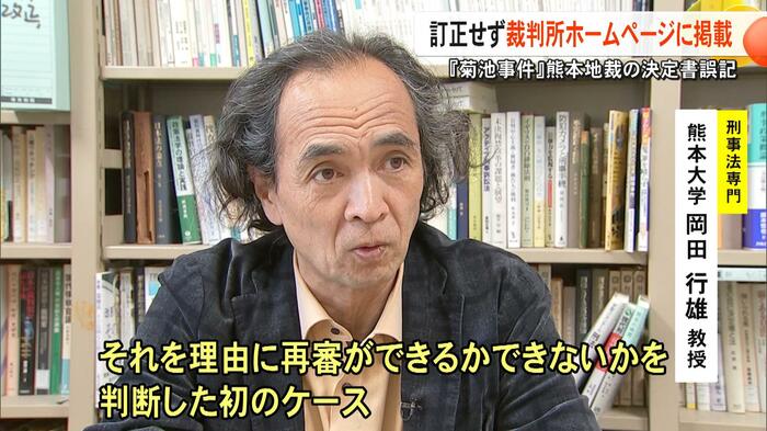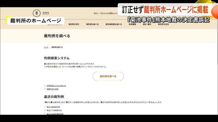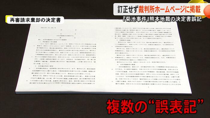2025年1月に再審請求が退けられた『菊池事件』について、誤った表記があった熊本地裁の決定書を、裁判所が訂正せずに判例としてホームページに掲載していることが分かった。これについて専門家はTKUの取材に「判例として残り続けることを考えなかったのか」と苦言を呈している。
