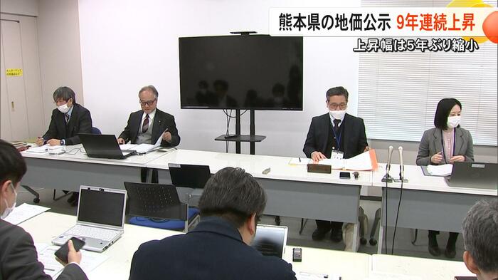 土地の取引の標準的な価格を示す地価公示。熊本県内では20の市と町の247地点が調査対象となっていて、県全体では、全ての用途の平均変動率が、プラス3.2%で、9年連続で上昇しました。