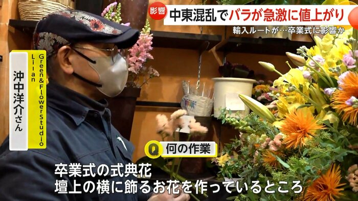 中東情勢の緊迫化…その影響は、店頭に色鮮やかな切り花が並ぶ「生花店」にも及んでいた。
