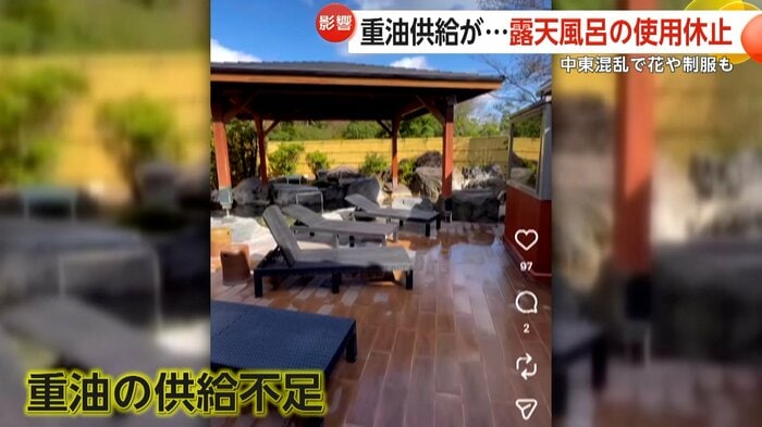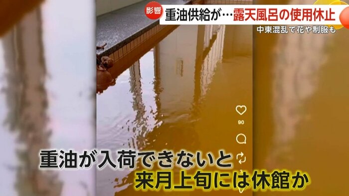 原油の安定供給への懸念が高まる中、福島・いわき市の温浴施設「いわき健康センター」では、湯を沸かすための重油の供給が滞り、今週から露天風呂の使用休止を決めた。