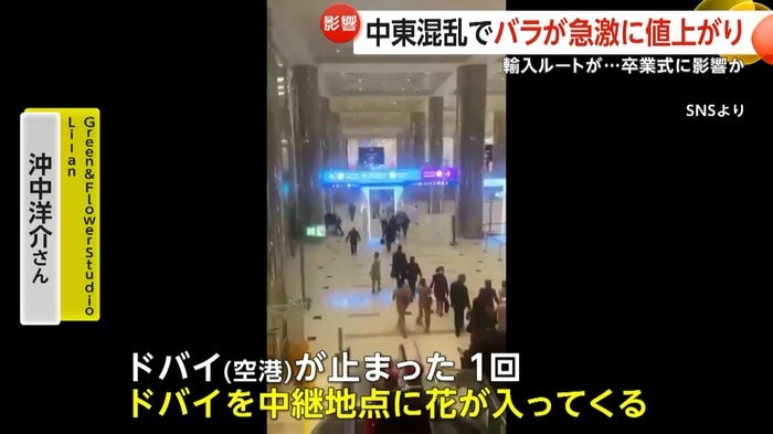 海外で生産された花の多くは、世界屈指のハブ空港である「ドバイ国際空港」などを経由し空輸される。空港が攻撃を受けたことでバラの供給量が減り、仕入れ値が高騰していた。