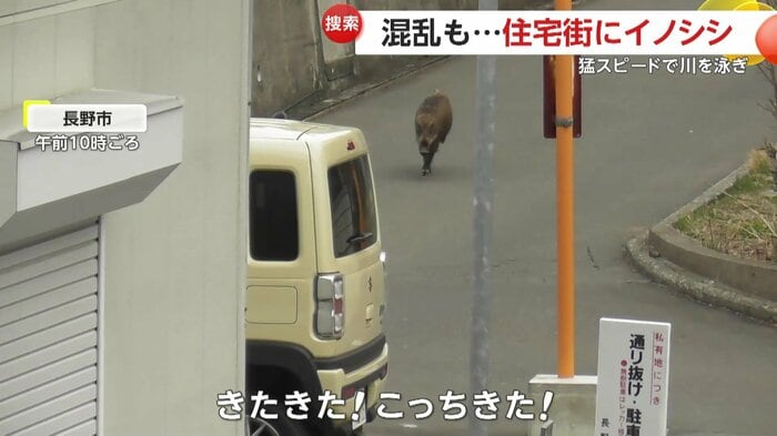 長野市中心部に突然現れたイノシシが住宅街を猛スピードで走り回り、川へ飛び込み対岸へ渡るなど大暴れ。けが人はいないものの、市と警察が警戒を続けている。
