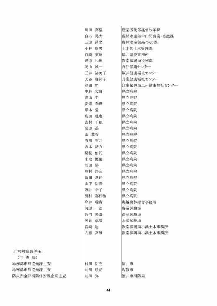 古市 仁希 防災安全部危機管理課長 交流文化部文化・スポーツ局ふくい桜マラソン課長