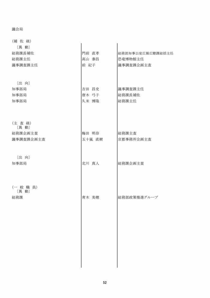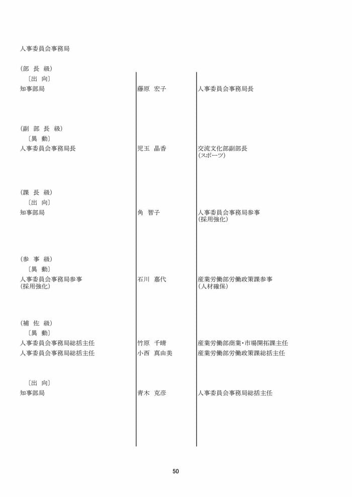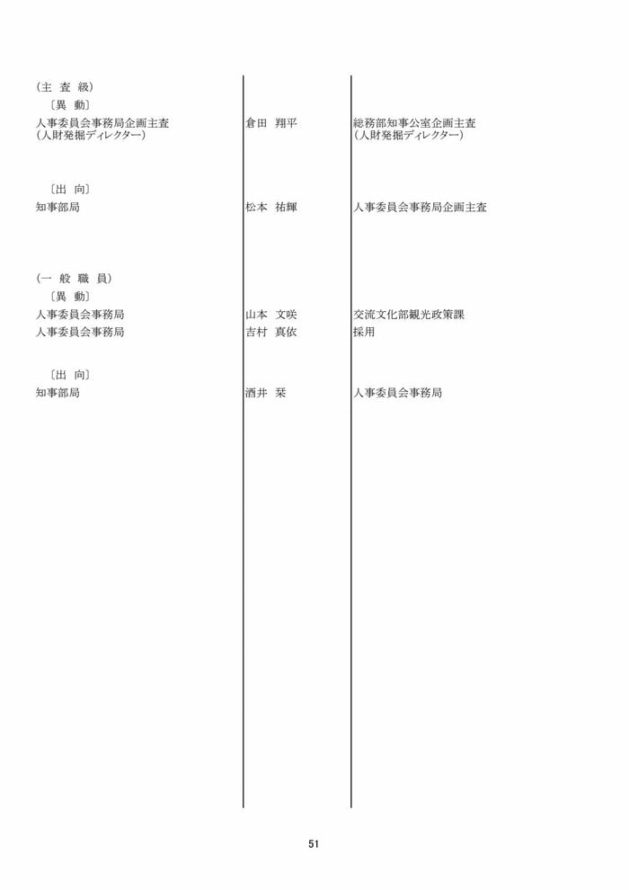 異動対象者は(氏名)(新職名)(現職名)の順で記載。※常用漢字を使用