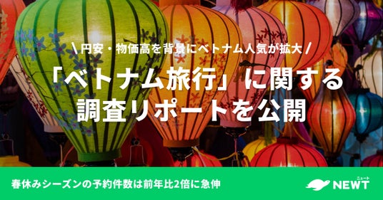 株式会社令和トラベル(本社:東京都渋谷区、代表取締役:篠塚 孝哉)が運営する、かしこい、おトク、旅行アプリ『NEWT(ニュート)』は、NEWTにおける予約データをもとに実施した、ベトナム旅行に関する調査リポートを発表します。