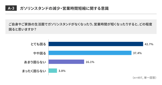 ・ガソリンスタンドの減少や営業時間の短縮は「困る」声が多数、約8割が影響を懸念