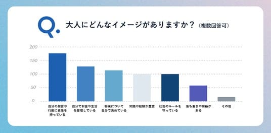 自身の将来(進学・就職)について真剣に考える場面や、選挙に行くといった、責任や権利を担う場面で、成人になることを実感するという声が多く集まりました。