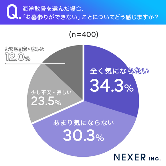 まず、海洋散骨を選んだ場合に「お墓参りができない」ことについてどう感じるかを聞いてみました。