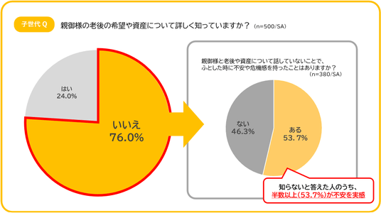 ~親の希望や資産、子世代の7割以上が「知らない」と回答。親の「楽観」に対し、子は「2人に1人が危機感」を抱く結果に~