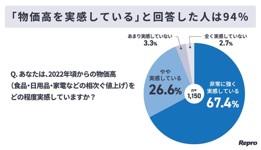物価高を「実感している」と回答した人は94%