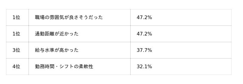 【結果2】入職の決めた理由は「職場の雰囲気」が半数近く