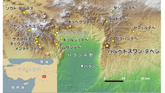 トルコ南東部シャンルウルファ県はユーフラテス川上流域に位置し、世界遺産ギョベクリテペ(*1)に代表される、先土器新石器時代(*2)(およそ1万2千年前から9千年前)の遺跡が多数分布しています(図1)。石灰岩の巨石を用いた特徴的な建築様式から“石の丘群(タシュ・テペレル)”とも呼ばれるこれらの遺跡は、農耕牧畜の始まりよりも古く、農耕社会の成立が社会の複雑化や大規模建築の出現をもたらしたとする従来の見方に再考を促す発見として近年世界的な注目を集めています。なぜこの時代のこの地域に巨石文化が誕生したのか、どのような社会構造だったのか、どのように発展し、衰退したのかなど、いまだ多くの謎が残されています。