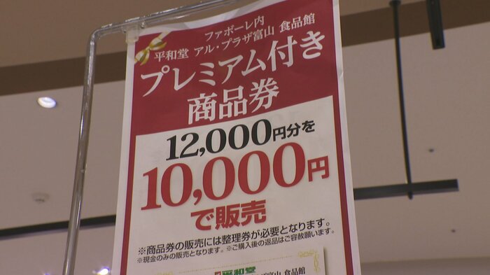 アル・プラザ富山は1万2000円分の商品券3000セットが用意され、午前10時の販売開始からおよそ3時間後に整理券の配布が終わりました。