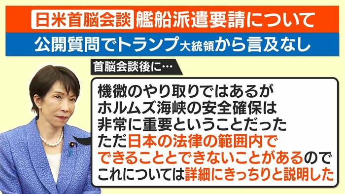 トランプ大統領からは、ホルムズ海峡への自衛隊の派遣など、日本に対して何らかの支援要請があるのではないかと注目されていましたが…。