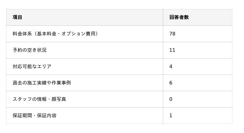 エアコンクリーニング業者のWebサイトを見る際に、最も早く確認したい情報はどれですか?