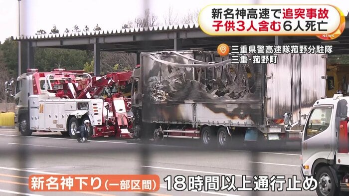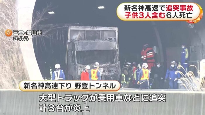 三重・亀山市の新名神高速のトンネル内で大型トラックなど車3台が炎上した追突事故で、死亡した6人のうち、3人は子供だったことが分かった。