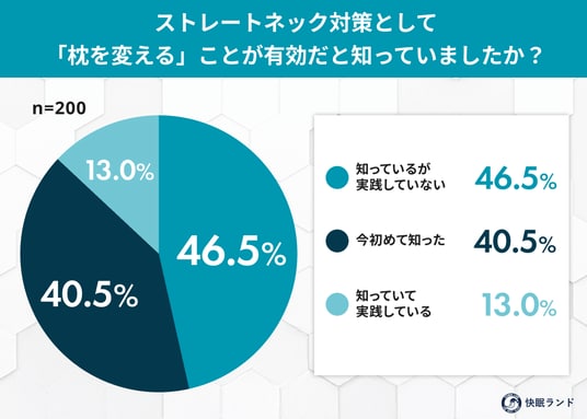 - 知識と実践のギャップ: 枕での対策が有効と知っているが「実践できていない」人が46.5%
