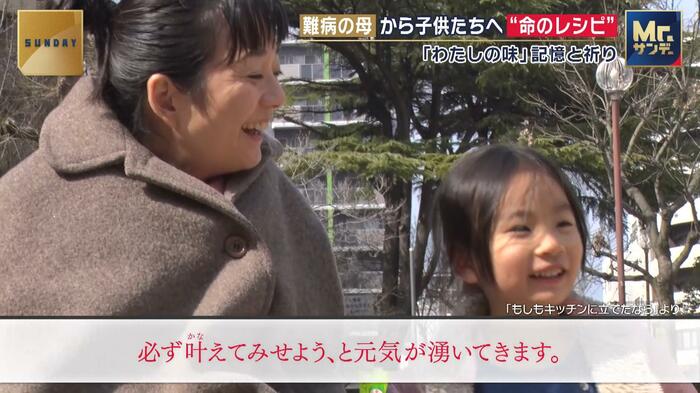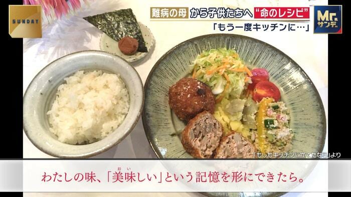 「子供たちに母の味を残したい」。難病を抱え、キッチンに立つことができなくなってしまった1人の母親が、愛する子供たちのために残す、“命のレシピ”とは…。