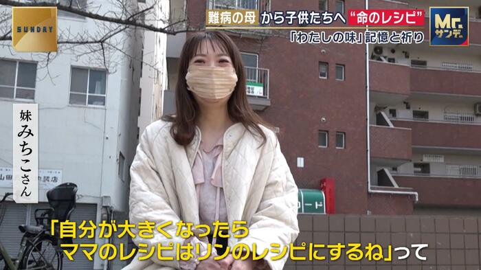 (Q.ママの味っていうのはわかるってことですよね?)はい。「自分が大きくなったら、ママのレシピはリンのレシピにするね」って言って、「リンがもらうね」って…。