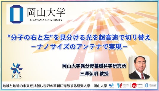国立大学法人岡山大学(本部:岡山市北区、学長:那須保友)の異分野基礎科学研究所の三澤弘明教授(特任)は、中国・東南大学および中国・北京大学との国際共同研究により、アミノ酸の“右手型・左手型”のような分子の左右の違いを見分ける光(キラル光)を、分子サイズの一点に作り出し、超高速にON/OFF・反転できることを実証しました。