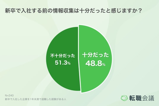 新卒で入社した企業を1年未満で退職した経験がある240名を対象に、退職の背景や入社前の情報収集状況について調査しました。