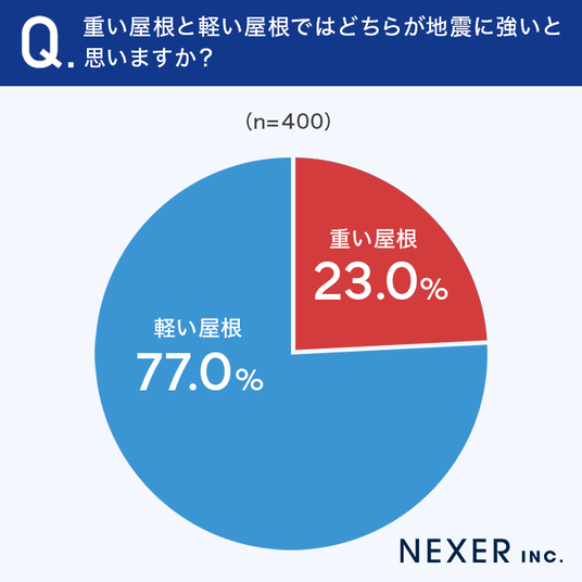 ■77.0%が「軽い屋根」の方が地震に強いと回答