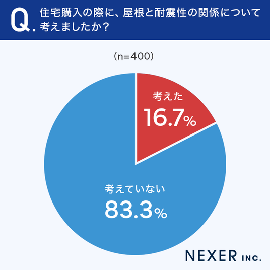 ■83.3%が、住宅購入時に屋根と耐震性の関係を「考えていない」と回答